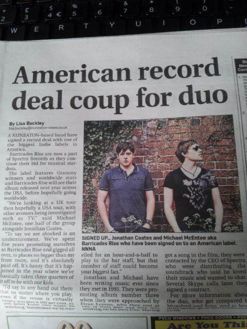 Barricades Rise Official Website - Acoustic Folk Rock Duo From The UK: STOP PRESS! Barricades Rise in the Nuneaton News